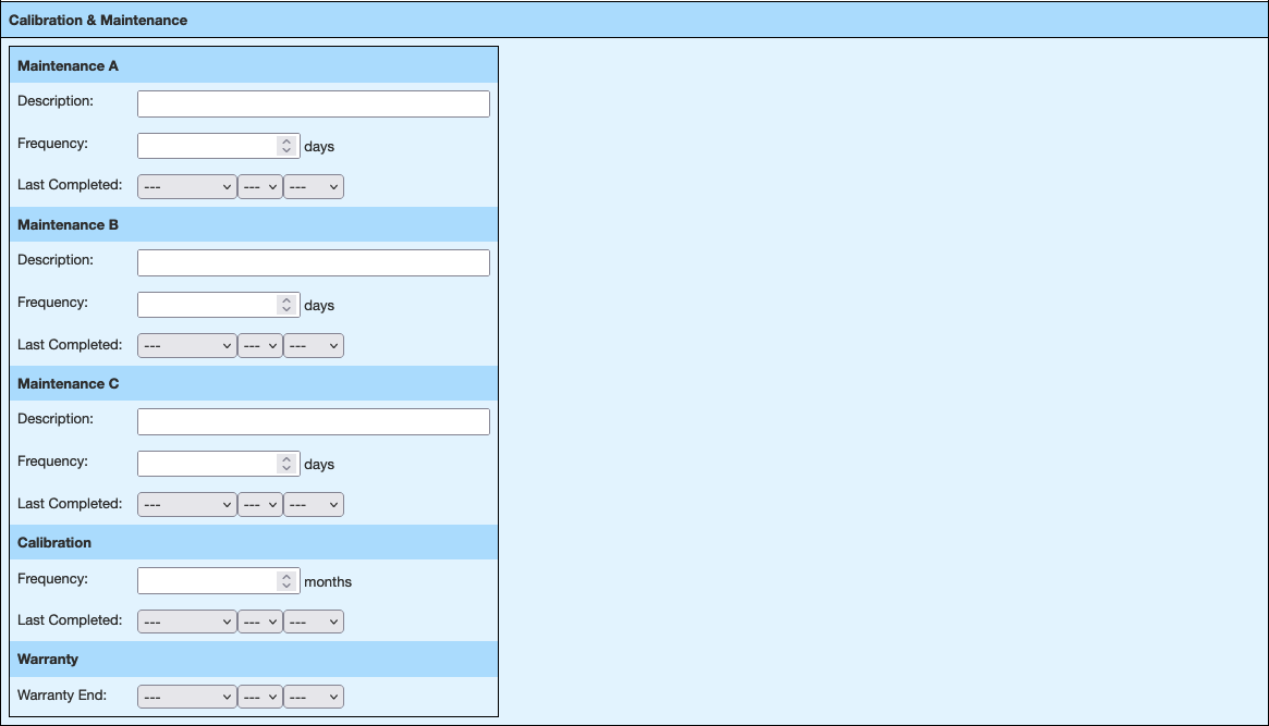 - Serial Details - Leave empty for non-serial instruments